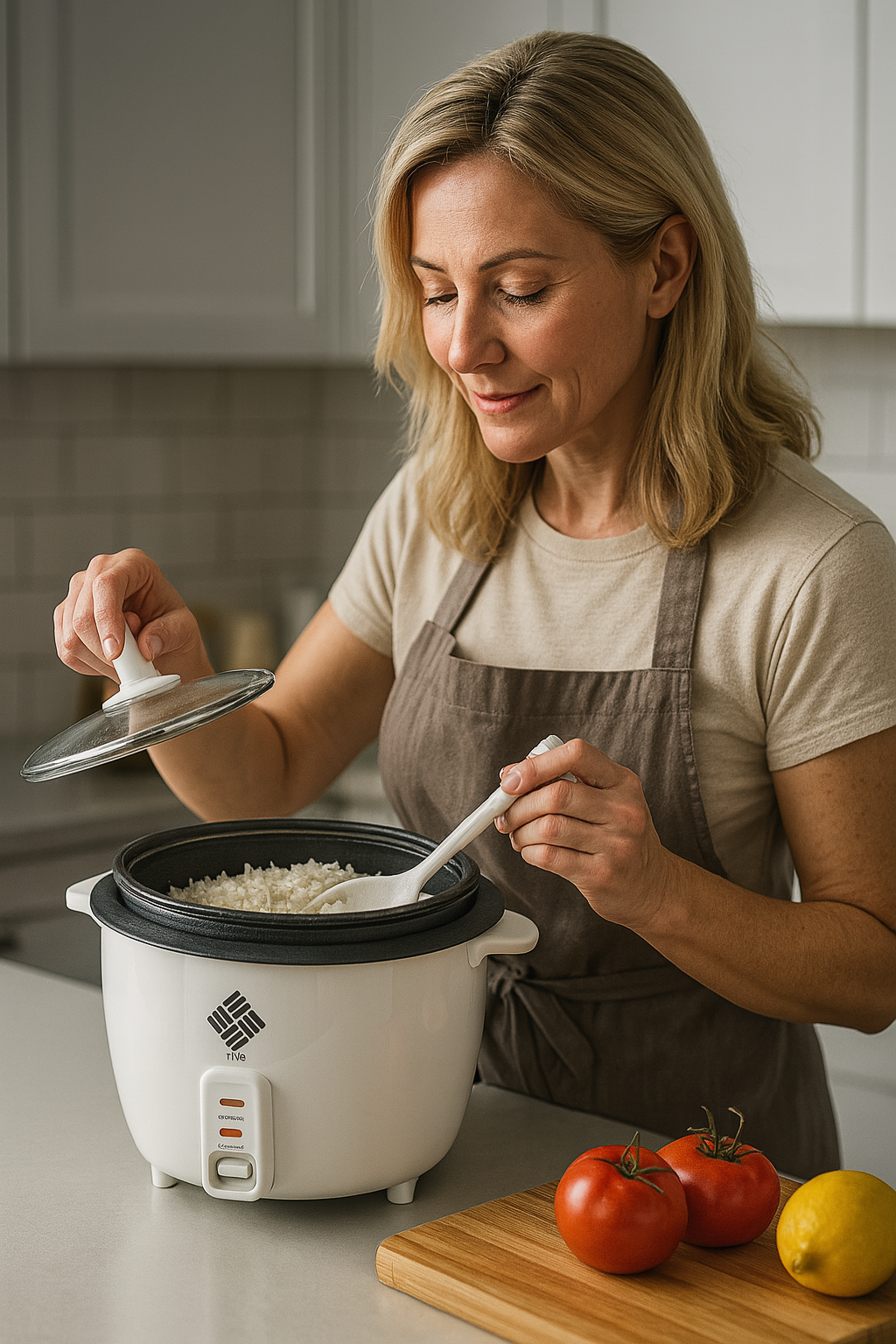 La olla eléctrica con capacidad de 2,8 litros facilita la preparación de arroz esponjoso de manera rápida y sencilla. Cuenta con una vaporera extraíble para cocinar al vapor, además de funciones para cocinar o calentar alimentos. Su interior de aluminio antiadherente garantiza una cocción uniforme, mientras que la tapa transparente permite supervisar el proceso. Con una potencia de 1000 vatios, es una herramienta eficiente para cualquier cocina.