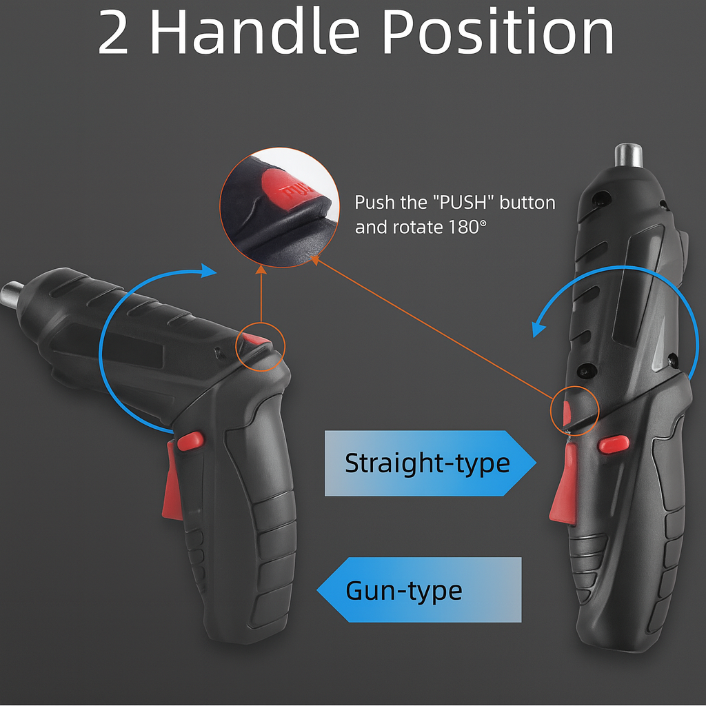 Este destornillador eléctrico multifunción incorpora un diseño magnético que mantiene las brocas firmemente en su lugar durante el uso, evitando caídas accidentales y facilitando un trabajo eficiente. Incluye un cable USB para una carga práctica en cualquier momento y lugar, eliminando preocupaciones sobre la autonomía. Su avanzada tecnología de disipación térmica garantiza un funcionamiento seguro y estable, prolongando la vida útil del dispositivo. Además, cuenta con un botón intuitivo para cambiar fácilmente la dirección de rotación, ofreciendo mayor versatilidad. La luz LED frontal mejora la visibilidad en áreas oscuras, asegurando precisión en cada tarea.