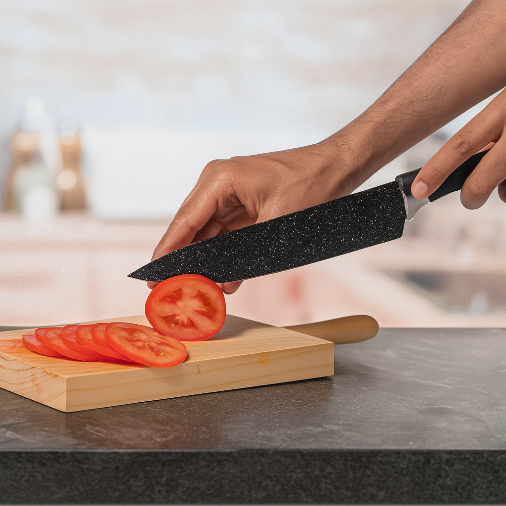 Este kit de 6 piezas de cuchillería para cocina ofrece herramientas esenciales para preparar alimentos con precisión y eficiencia. Cada pieza está diseñada para brindar un corte limpio y seguro, facilitando desde tareas básicas hasta técnicas culinarias avanzadas. Ideal para chefs profesionales y aficionados que buscan calidad y durabilidad en su equipamiento.