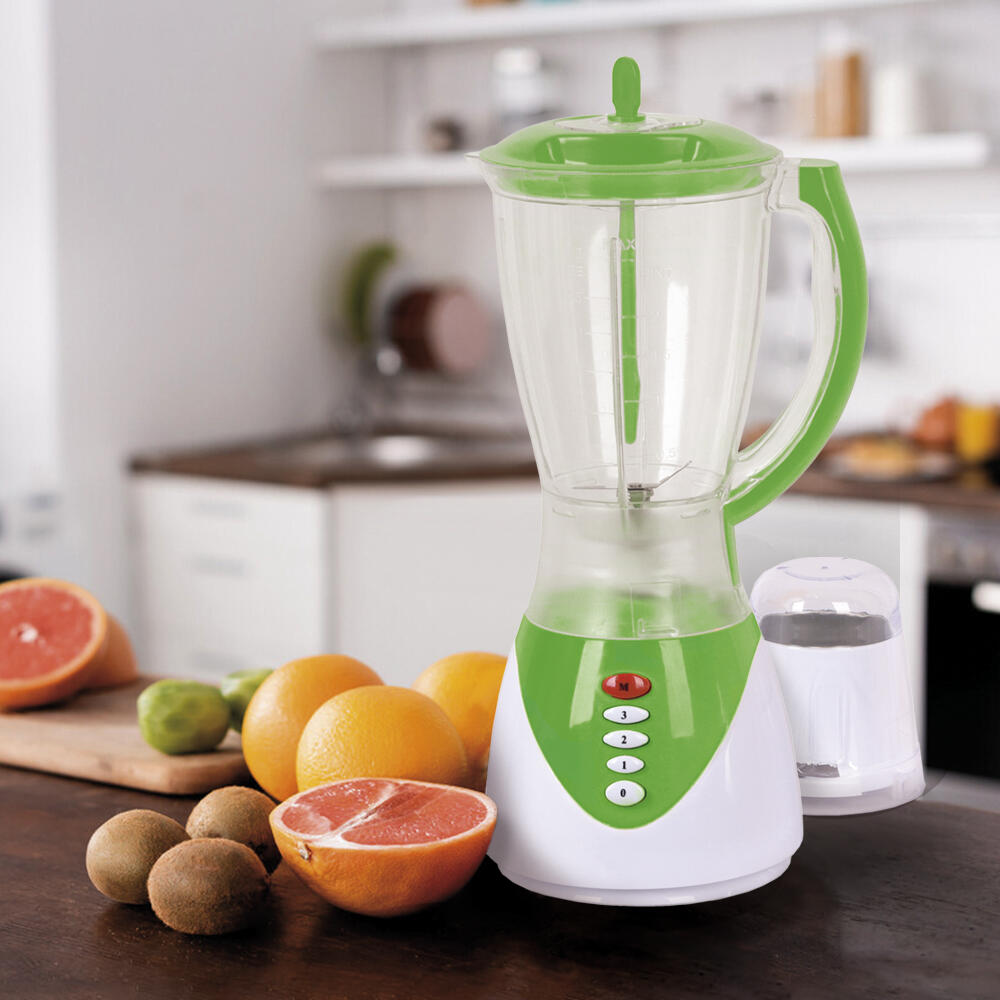 Esta licuadora está equipada con cuchillas de acero inoxidable que garantizan un corte eficiente y duradero, facilitando la preparación de una amplia variedad de recetas. Su jarra de plástico resistente soporta el uso diario y es ligera para un manejo cómodo. Ideal para mezclar salsas, batidos y otros ingredientes, ofrece versatilidad y practicidad en la cocina, asegurando resultados homogéneos y rápidos en cada uso.