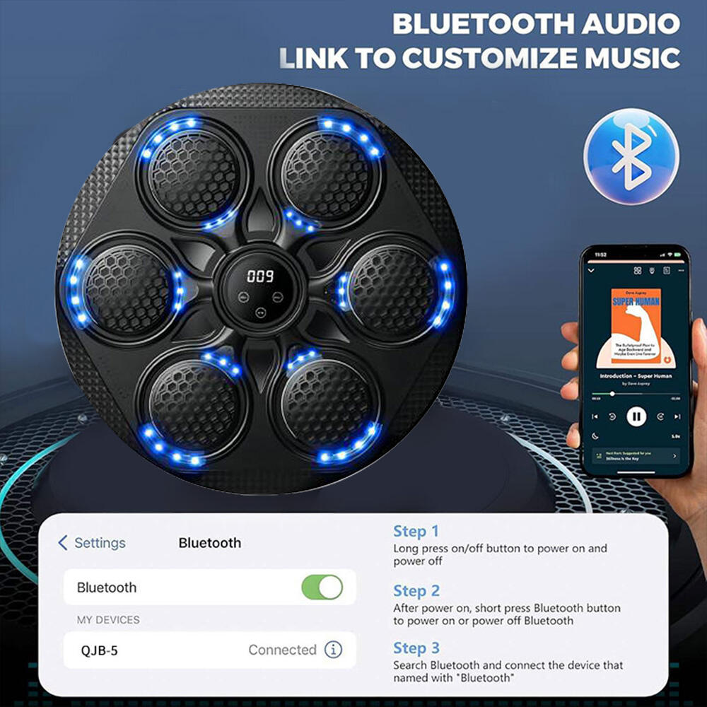 Máquina de Boxeo Musical con Reacción Inteligente, objetivo de pared y carga USB, ideal para entrenamientos en casa con guantes incluidos. Mide 40x40x7.5 cm. Esta máquina transforma tu rutina al combinar ejercicio y diversión, mejorando agilidad, reflejos y fuerza. Cuenta con resistencia ajustable y un sistema interactivo que se sincroniza con tu música vía Bluetooth, ofreciendo un entrenamiento motivador y personalizado. Fabricada con materiales seguros y duraderos, es apta para toda la familia. Su instalación es sencilla y versátil, permitiendo su uso en interiores y exteriores. Perfecta para un entrenamiento efectivo y entretenido en cualquier espacio.