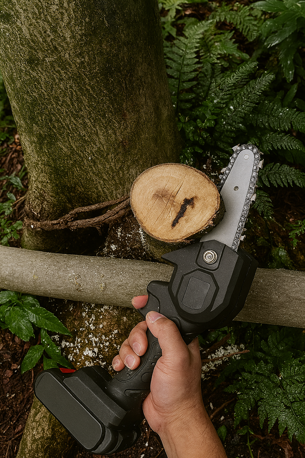 La Mini Motosierra Eléctrica de Mano combina potencia y portabilidad en un diseño compacto, perfecto para trabajos de poda, jardinería y proyectos de bricolaje. Su funcionamiento inalámbrico ofrece libertad de movimiento sin enredos, mientras que su estructura ergonómica garantiza un manejo cómodo y seguro, incluso para usuarios sin experiencia previa. Esta herramienta eficiente facilita cortes precisos en ramas y madera ligera, optimizando el tiempo y esfuerzo en cada tarea.