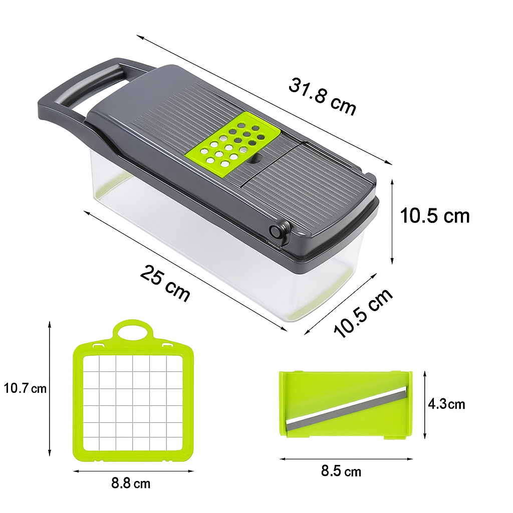 Optimiza tu tiempo en la cocina con este cortador profesional mandolina 14 en 1, diseñado para cortar, picar, rallar y más con precisión y facilidad. Equipado con 14 accesorios multifuncionales y cuchillas de acero inoxidable ultra afiladas, garantiza resultados uniformes y profesionales. Su diseño seguro incluye protector para manos y base antideslizante, mientras que su estructura desmontable y herramienta de limpieza facilitan su mantenimiento. Fabricado en plástico ABS libre de BPA, es resistente y apto para uso alimentario. Ideal para preparar ingredientes saludables de forma rápida y ordenada.
